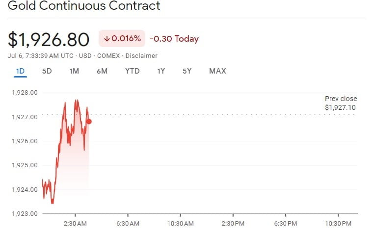 The combination of higher U.S. Treasury yields, a stronger currency, and the hawkish tone conveyed in yesterday's minutes put downward pressure on gold prices. August's most active gold futures contract ended the most recent trading session down $6.80, at $1922.70.