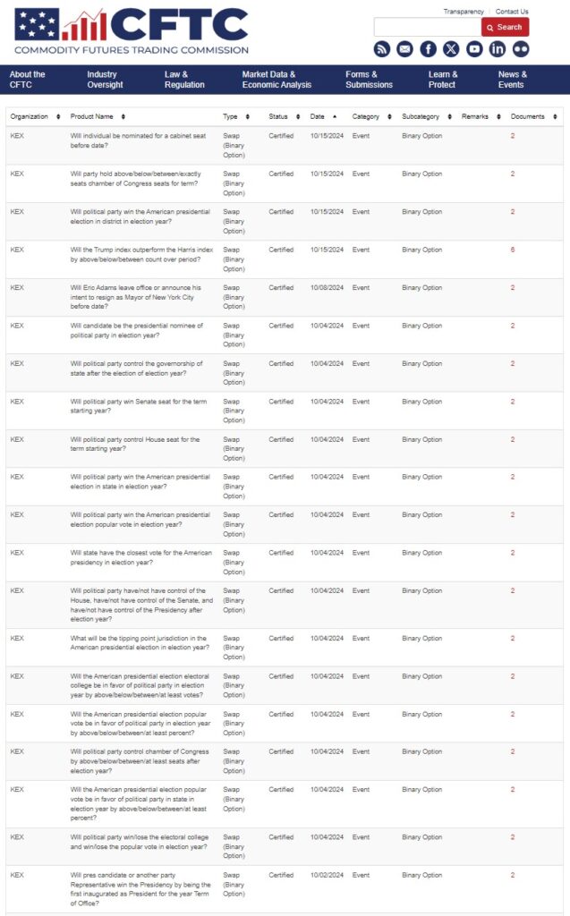 Kalshi has certified more than a dozen event contracts that are related to the results of political events in the United States since he prevailed in a major court battle in September.