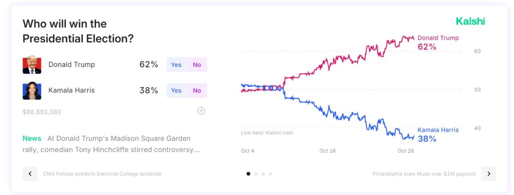 Following his victory in a landmark court battle in September, Kalshi released event contracts for wagering on the results of the US election on October 7. This event was the first time that the United States government has authorized the operation of a market for election prediction.