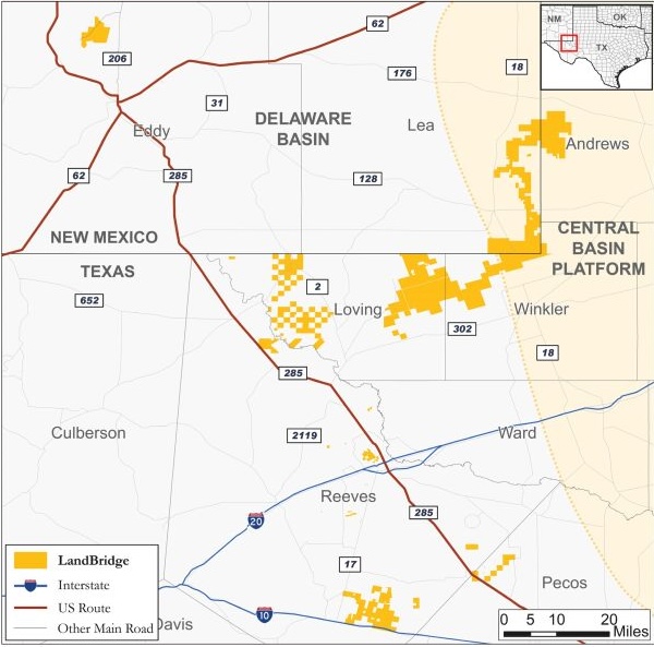 LandBridge's regulatory filings indicate that it possesses approximately 220,000 surface acres in and around the Delaware subbasin, which is abundant in oil and natural gas, in the Permian Basin region of Texas and New Mexico.