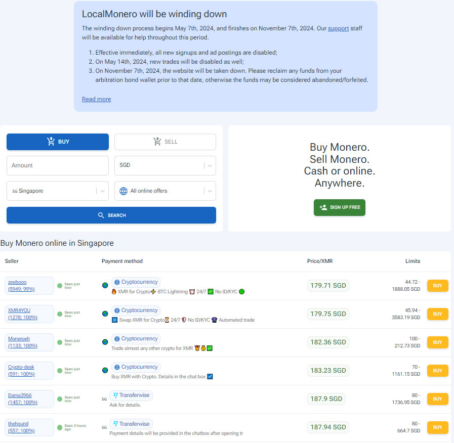 LocalMonero announced on May 7 that, effective immediately, all advertisements and new registrations for Monero transactions are disabled. The platform will turn off trading of the privacy-focused cryptocurrency asset on May 14