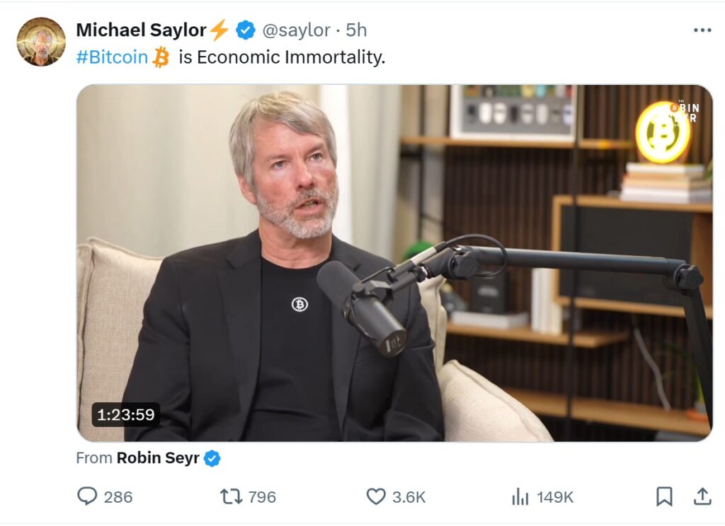 Saylor's remarks were made during a comprehensive conversation with Robin Seyr, the Bitcoin podcast's presenter.