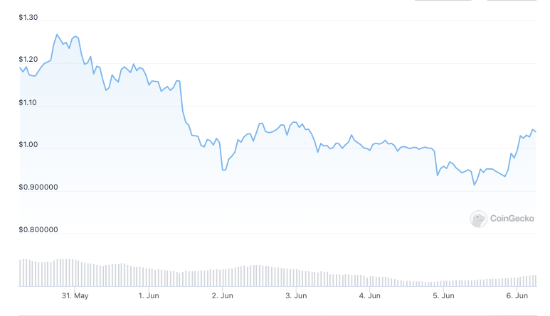 Despite the platform's DDoS issues, Stepn's native token, the Green Satoshi Token (GST), has not experienced a significant drop in value in recent days. On the contrary, the GST is up around 10% in the last 24 hours and is currently trading at $1.04 at the time of writing. According to CoinGecko data, the token's market capitalization is $624 million.