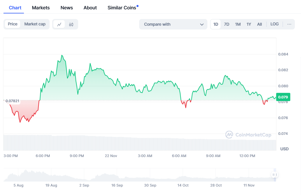 During the previous twenty-four hours, the price of NEIRO has been trading close to the flatline, and it has settled at $0.079 at the time of this report. The coin reached a low of $0.0753 and a high of $0.08385, respectively, during the course of the day.