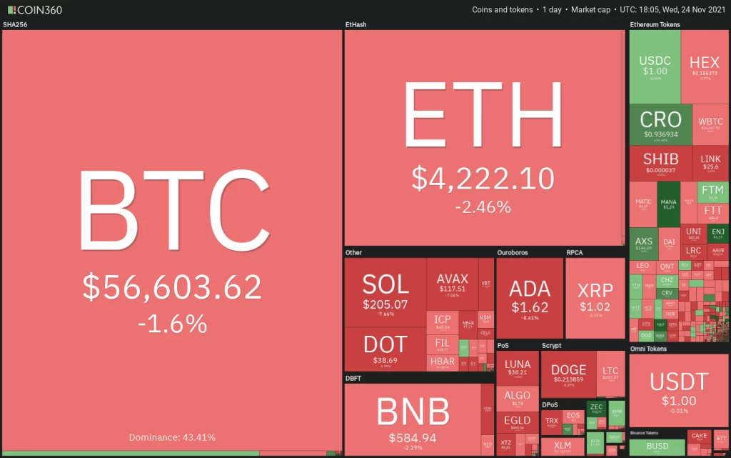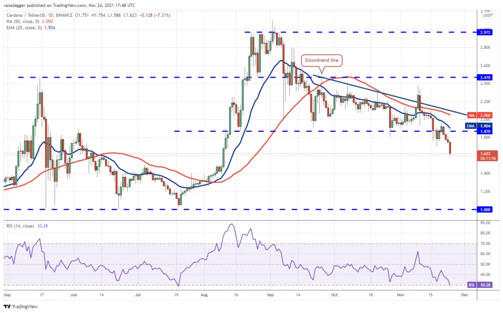 Cardano (ADA) fell from the 20-day EMA ($1.90) on Nov. 21, and the bears have now dragged the price below the important support level of $1.70. If bears keep the price below $1.70, the selling pressure may increase.