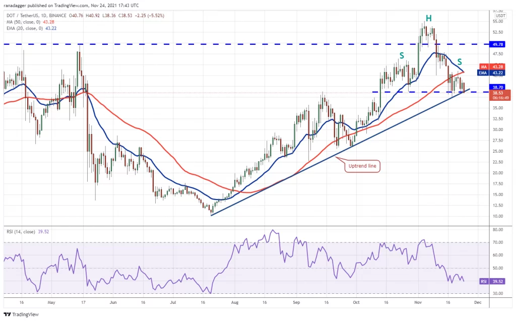 If the price falls below $37.53 and closes below it, the DOT/USDT pair will complete a bearish H&S pattern. After that, the pair could begin a deeper correction toward $26.