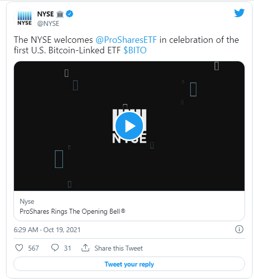 “The new futures-based ETF will trade on the NYSE, giving institutional investors a more familiar experience than creating individual trading accounts and trading directly on a spot or futures-based cryptocurrency exchange or crypto trading platform.”
