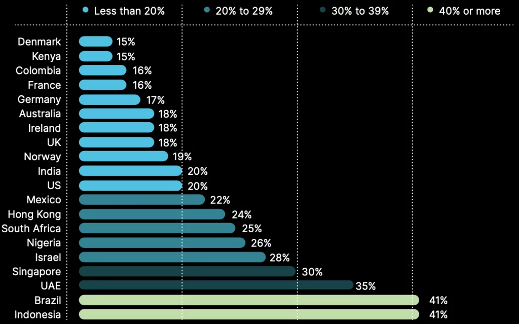 According to Gemini's report, Indonesia and Brazil have the highest proportion of cryptocurrency investors among the general population.