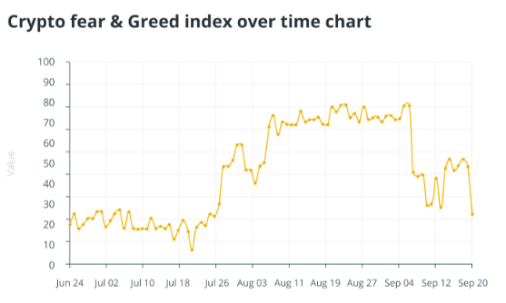 With a score of 10, the index hit a one-year low on July 21st, followed by a parabolic recovery to five-month highs of 79 in late August and early September. The whole cryptocurrency market has experienced similar volatility, with prices frequently printing double digits.