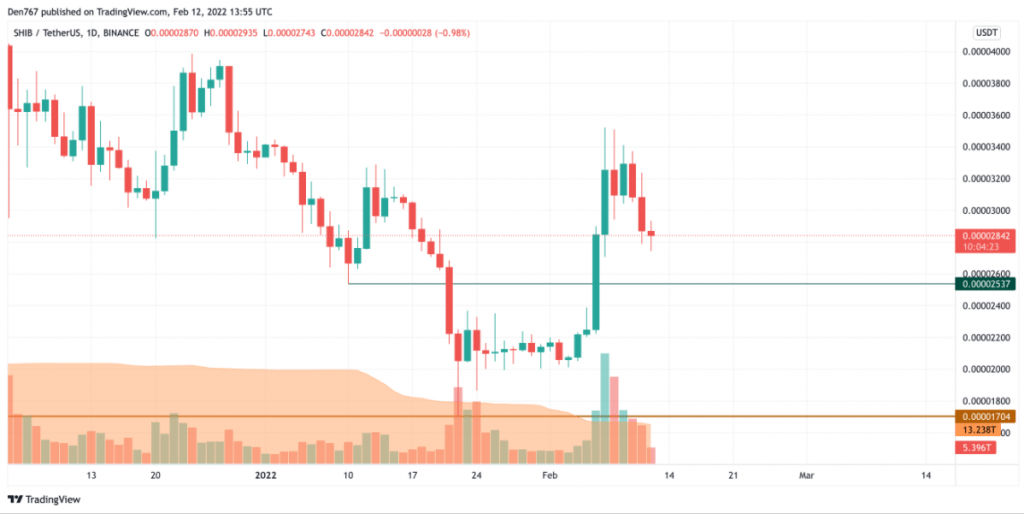 Price of Shiba Inu has created a falling wedge pattern, indicating that the token's bullish view has been confirmed following a breach over its upper boundary on February 6. However, it looks that SHIB might fall much farther in order to investigate crucial lines of defense before resuming its upward trajectory.