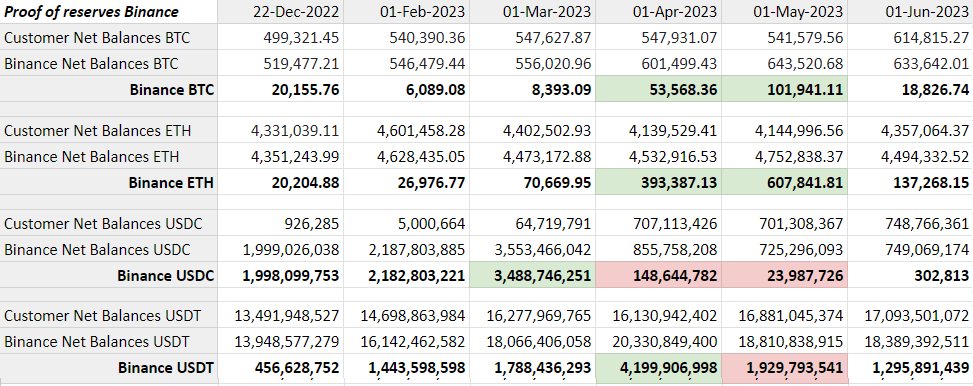 Binance reserves balance between Dec. 2022- June 2023. Source: Binance
