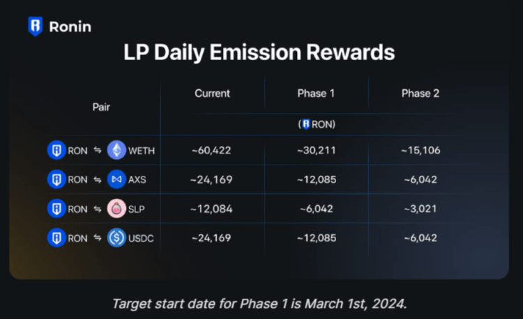 Sky Mavis to Reduce Ronin DEX Liquidity Rewards by 50% Starting March