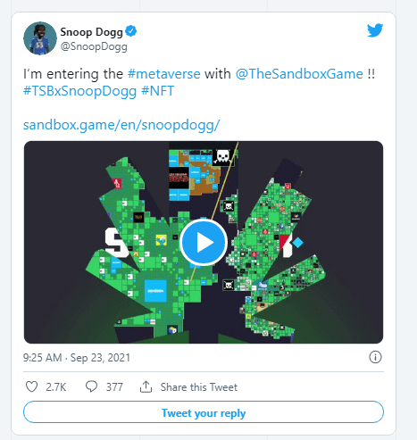 Snoop Dogg stated in a statement, “I'm always looking for new ways to interact with fans, and what we've built in The Sandbox is the future of virtual hangouts, NFT drops, and exclusive shows.”