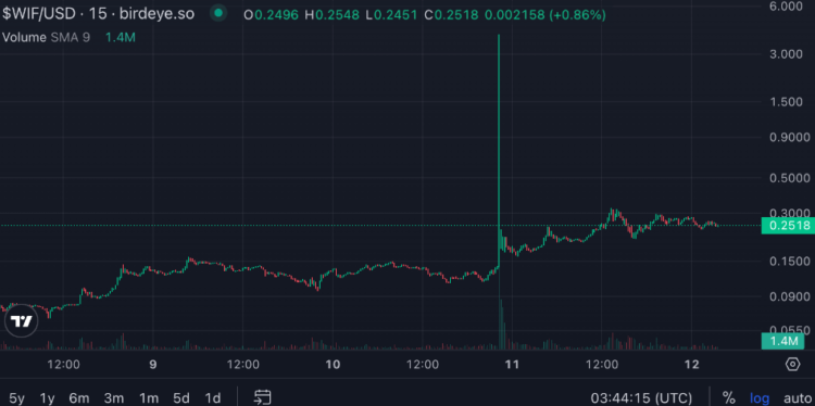 As a result of the solitary transaction, the price of WIF surged momentarily to $4.