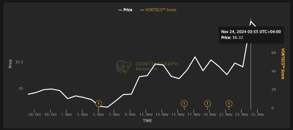 The cryptocurrency asset reached its all-time high of $6.32 on November 24. French authorities took Durov, the inventor of Telegram, into custody on August 24 due to allegations of infractions committed by the encrypted messaging app.
