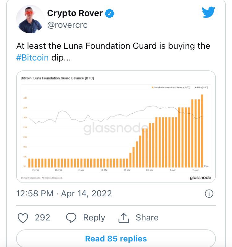 Following Terra's recent (and ongoing) Bitcoin (BTC) buying spree, which included the purchase of approximately 2,500 BTC ($100 million) just two days ago, the wallet used by LFG has surpassed MicroStrategy and Tesla to become the world's third-largest holder of digital gold.