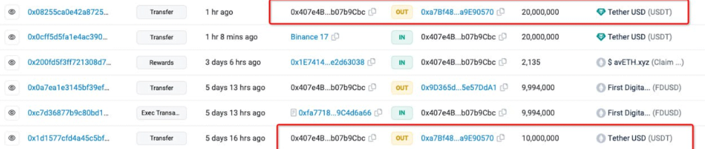 A zero transfer fraudster allegedly stole 20 million USDT from the victim address 0x4071…9Cbc, as reported by the on-chain analytics firm PeckShield.