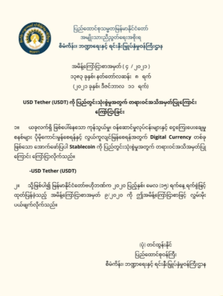 The NUG's decision to make Tether an official currency undermines the Central Bank of Myanmar's crypto ban, which was enacted in May of last year.
