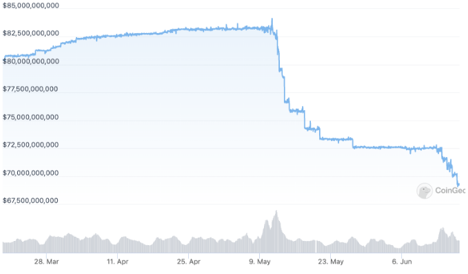 USDT's market cap fell below $70 billion for the first time since October 2021 on June 16. The slump came following a string of losses that began immediately after the USDT market value surpassed $80 billion for the first time in May.