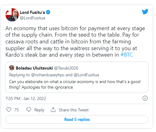 Aside from remittances, the Lord mentioned the domestic benefits of using the open-source protocol. He believed that Tonga might develop a BTC circular economy, calling it “one of the rare cases in where having a thinly populated little island monarchy archipelago is a benefit.”