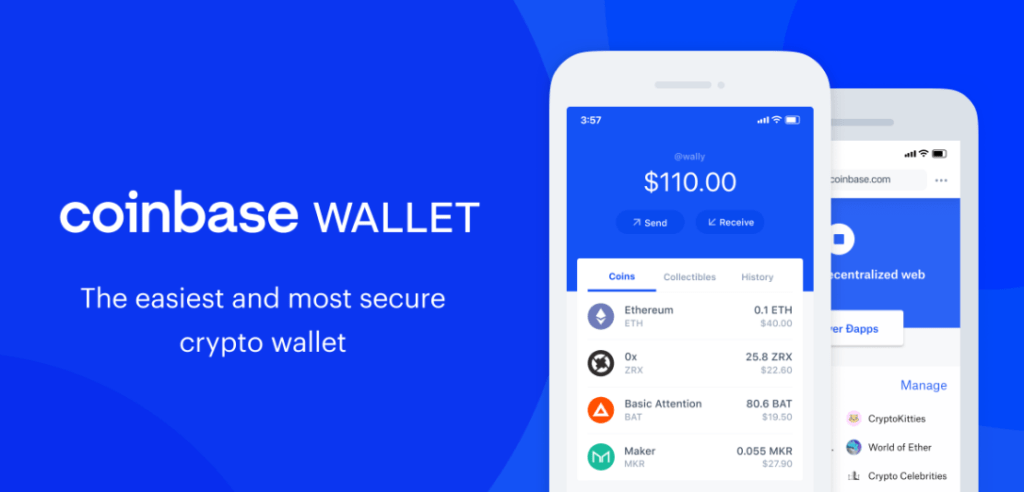 The Coinbase Wallet is a wonderful place to start if you're new to cryptocurrencies. The wallet is fully connected with the company's exchange, It is available as an app for Android or iOS, and can be downloaded, making it simple to execute transactions, including buying coins and tokens using fiat money.