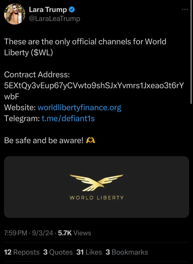The WLF DeFi initiative was announced by hackers who accessed Lara Trump's account, the daughter-in-law of the former president.