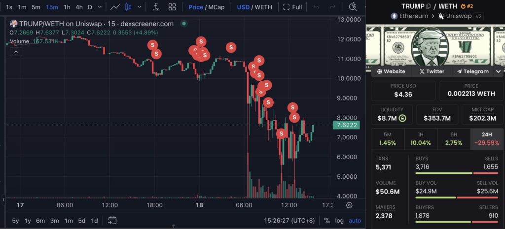 A Trump Token whale made a $3.7 million profit by selling 171,000 tokens amid a market sell-off.