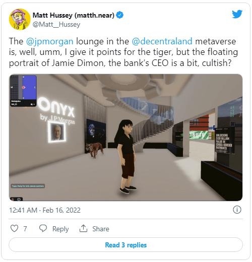 Despite including some meme components in its lounge, the United States' largest bank is serious about the Metaverse. The Onyx lounge opened at the same time as the bank released an assessment on its potential, which was bullish.