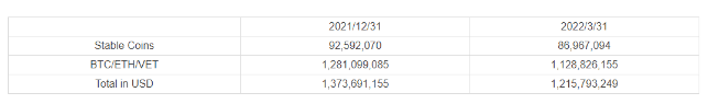 Since December 31, 2021 to May 31, 2022, when the project began recording its first quarter, the price of bitcoin has dropped 34%, the price of ether has dropped 36%, and the price of VET has dropped 54%.