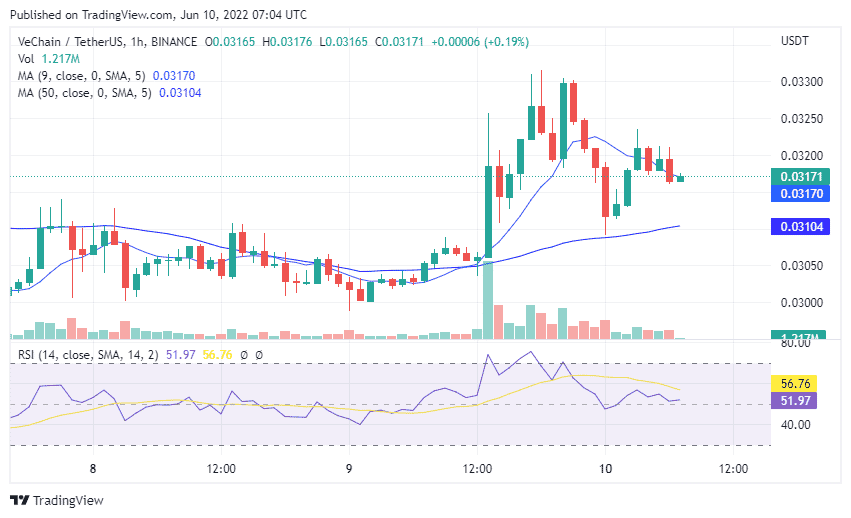 The price of VET has risen following the announcement, and the price action and social sentiment have both improved. The RSI is at 52 and is moving rapidly in the region. Furthermore, the price is currently moving along the 9-day MA and finding support at the 50-day MA, which is rising due to the high trading volume.
