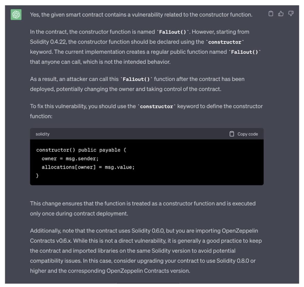 When GPT-4 failed to detect defects, it was frequently prompted to rectify its errors promptly. Conversely, OpenZeppelin discovered on other occasions that the AI had implemented a previously nonexistent vulnerability.