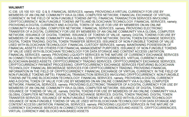 Walmart submitted one trademark application with the USPTO. The applications were filed on December 30, 2021, by the retail behemoth.