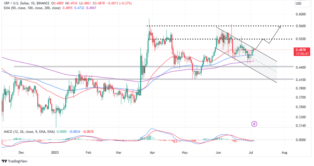 The XRP price defies all odds by accruing 1.5% gains over the past 24 hours. On Tuesday, the cross-border money transfer token was trading at $0.49 with a trading volume of $886 million and a market capitalization of approximately $24 billion.